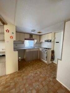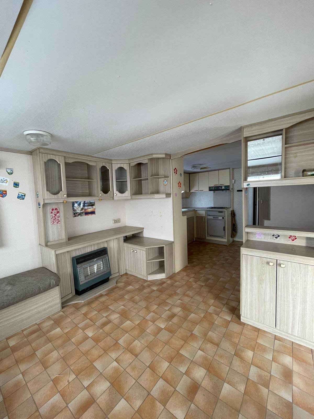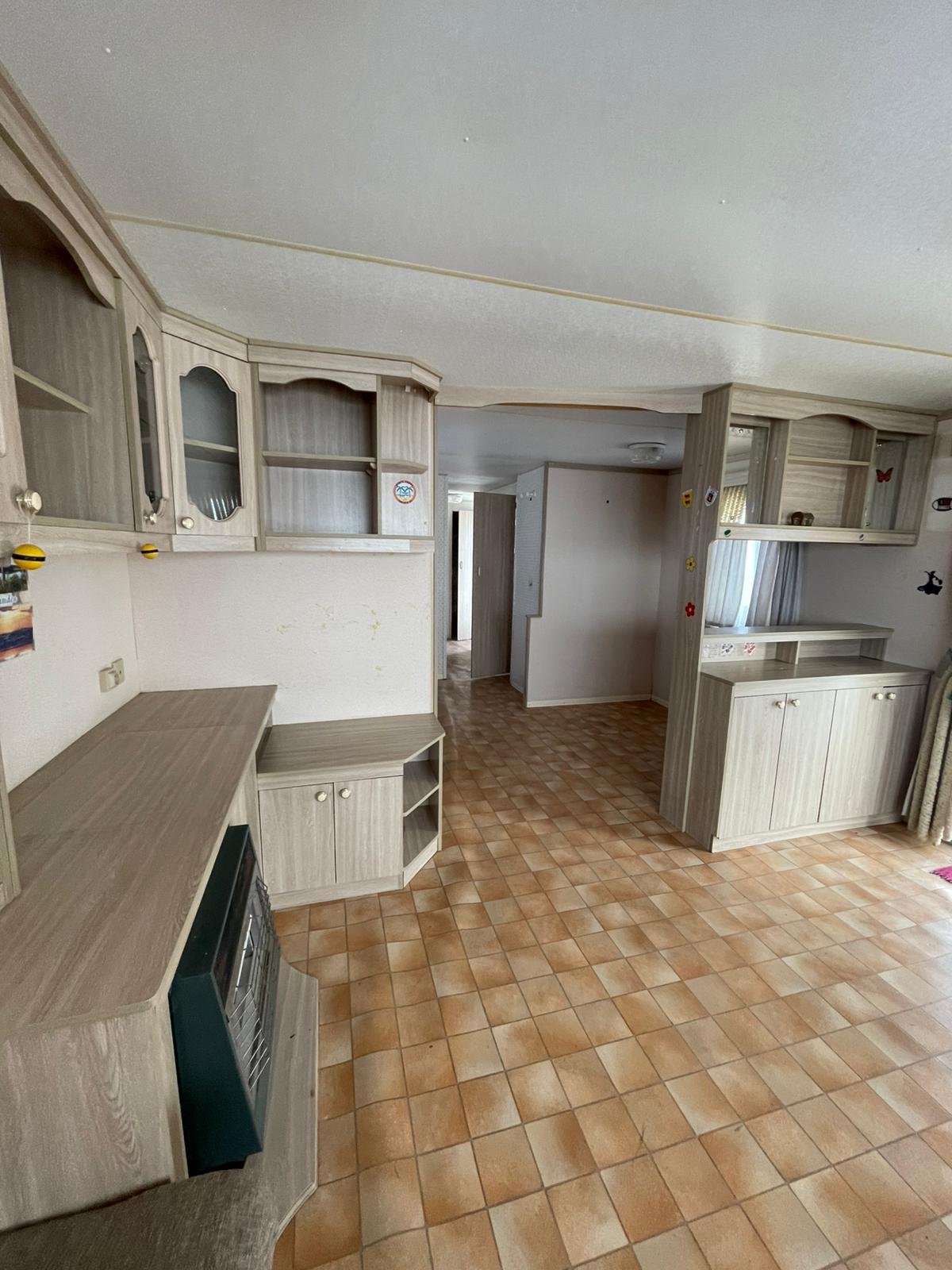 Área total: 44 m²Mobilhome composta por uma sala de estar com cozinha equipada com fogão, forno e esquentador. Conta com um quarto com cama de casal e dois quartos com duas camas. Inclui uma casa de banho completa com chuveiro, lavatório e sanita.