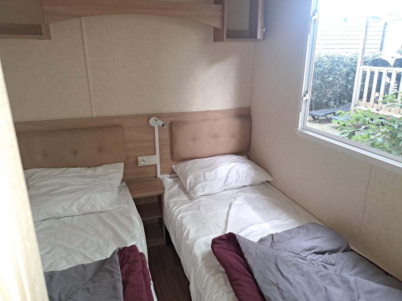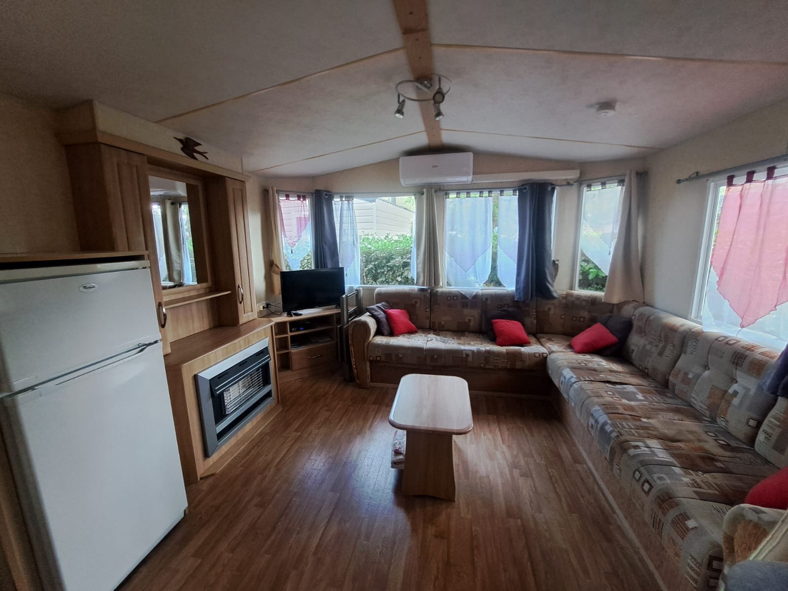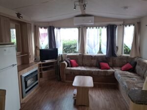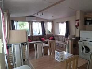 Área total: 44 m²Casa equipada com ar condicionado, máquina de lavar roupa e máquina de lavar loiça. Dispõe de uma sala de estar com cozinha totalmente equipada, incluindo frigorífico, fogão, exaustor e esquentador. Conta com um quarto com cama de casal e dois quartos com duas camas. Inclui uma casa de banho completa com chuveiro, lavatório e sanita.