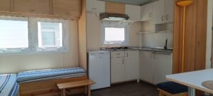 Área total: 34,4 m²Casa equipada com ar condicionado. Dispõe de uma sala de estar com cozinha totalmente equipada, incluindo frigorífico, fogão, exaustor e esquentador. Conta com um quarto com cama de casal e um quarto com duas camas. Inclui uma casa de banho completa com chuveiro e lavatório, além de uma casa de banho de serviço com sanita separada.