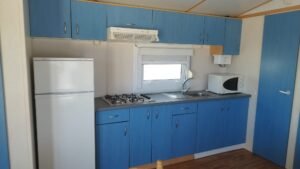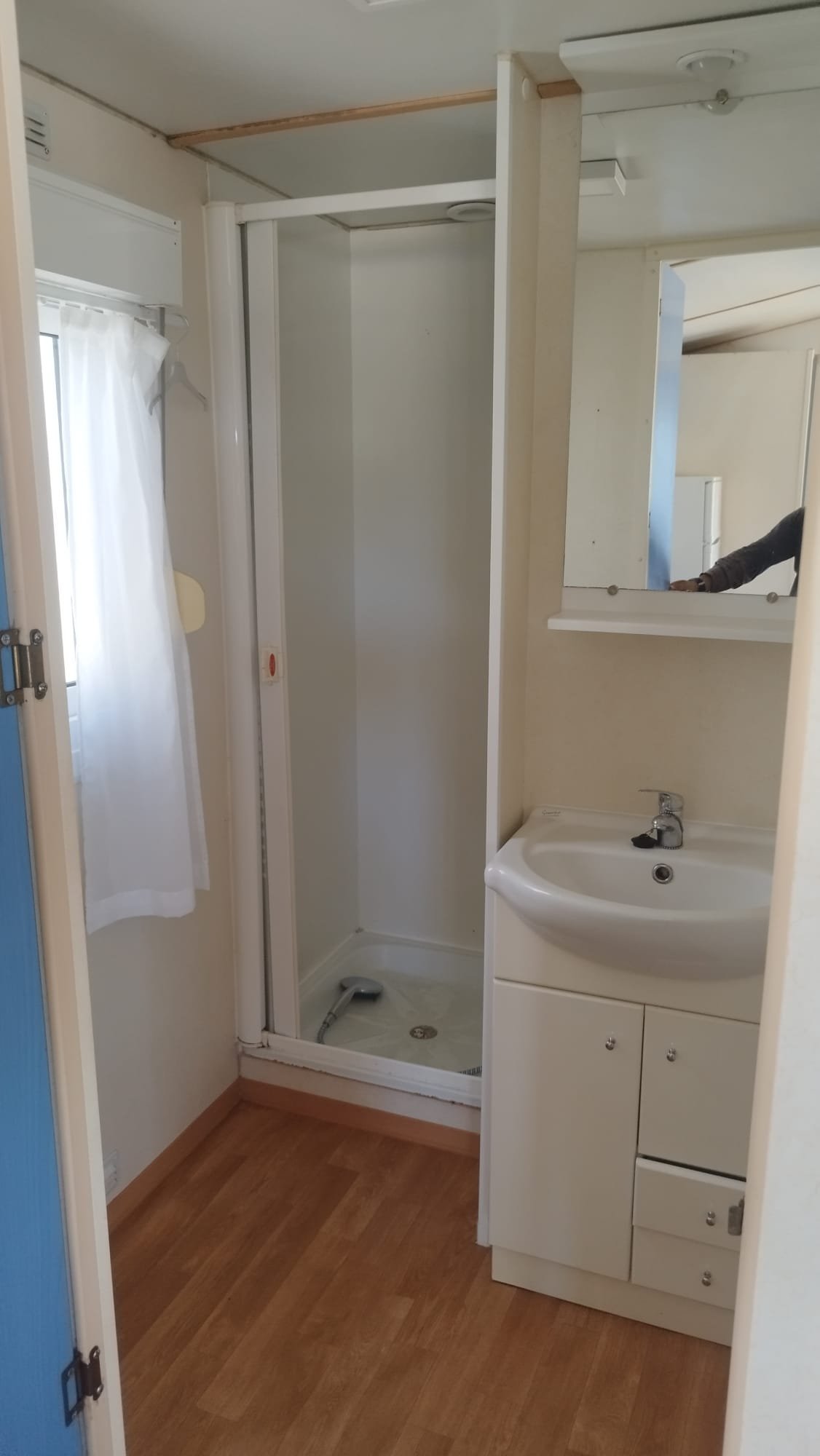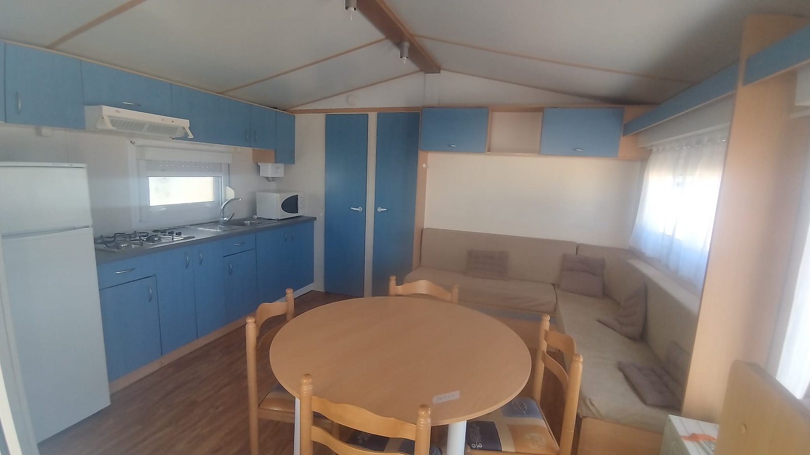 Área total: 32 m²Mobilhome equipada com ar condicionado e persianas, composta por uma sala de estar com cozinha totalmente equipada, incluindo frigorífico grande, exaustor, fogão, micro-ondas, ar condicionado e esquentador. Conta com um quarto com cama de casal. Inclui uma casa de banho completa com chuveiro e lavatório, além de uma casa de banho de serviço com sanita separada.