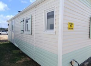 Área total: 34,4 m²Casa composta por uma sala de estar com cozinha totalmente equipada, incluindo frigorífico, fogão, exaustor e esquentador. Conta com um quarto com cama de casal e um quarto com duas camas. Inclui uma casa de banho completa com chuveiro e lavatório, além de uma casa de banho de serviço com sanita separada.