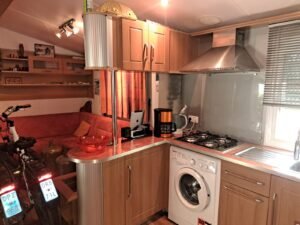 Área total: 40 m²Casa equipada com máquina de lavar roupa, lava-louças, ar condicionado e persianas. Possui uma ampla sala de estar com cozinha totalmente equipada, incluindo frigorífico grande, exaustor, fogão, forno, micro-ondas e esquentador. Conta com um quarto principal com closet amplo e um quarto com duas camas. Dispõe de uma casa de banho completa com chuveiro e lavatório, além de uma casa de banho de serviço com sanita separada.