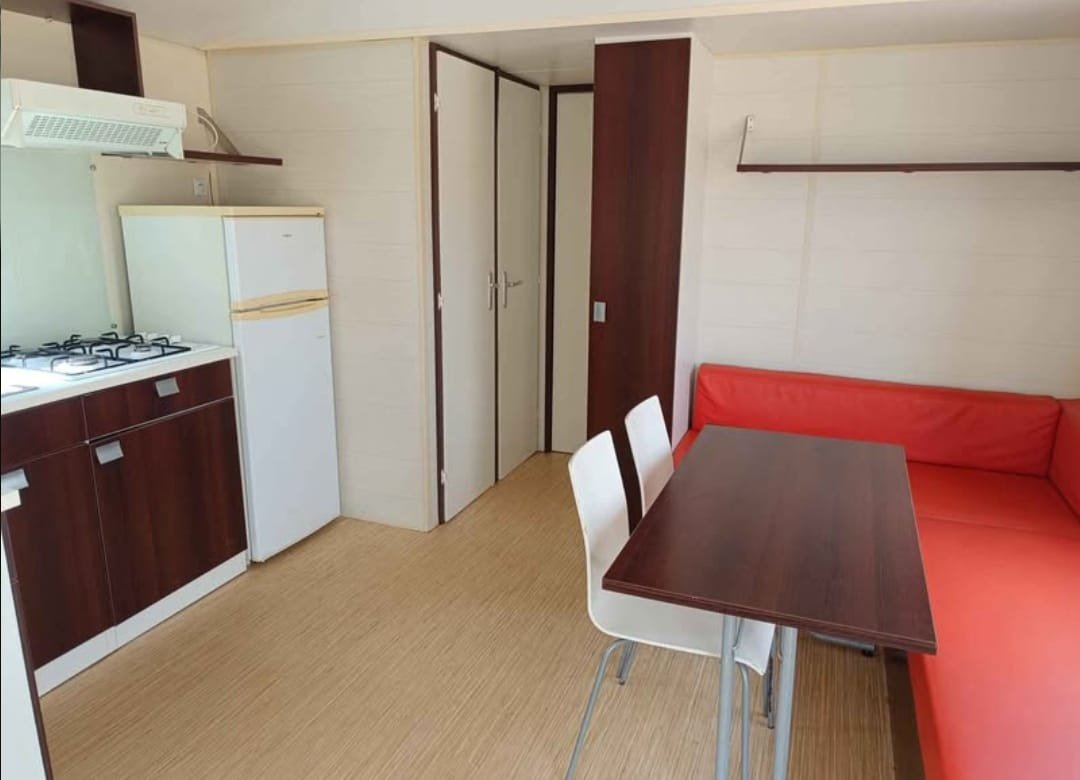 Área total: 31,6 m²Casa composta por uma sala de estar com cozinha totalmente equipada, incluindo frigorífico, fogão, exaustor e esquentador. Conta com um quarto com cama de casal e um quarto com duas camas. Inclui uma casa de banho completa com chuveiro e lavatório, além de uma casa de banho de serviço com sanita separada.
