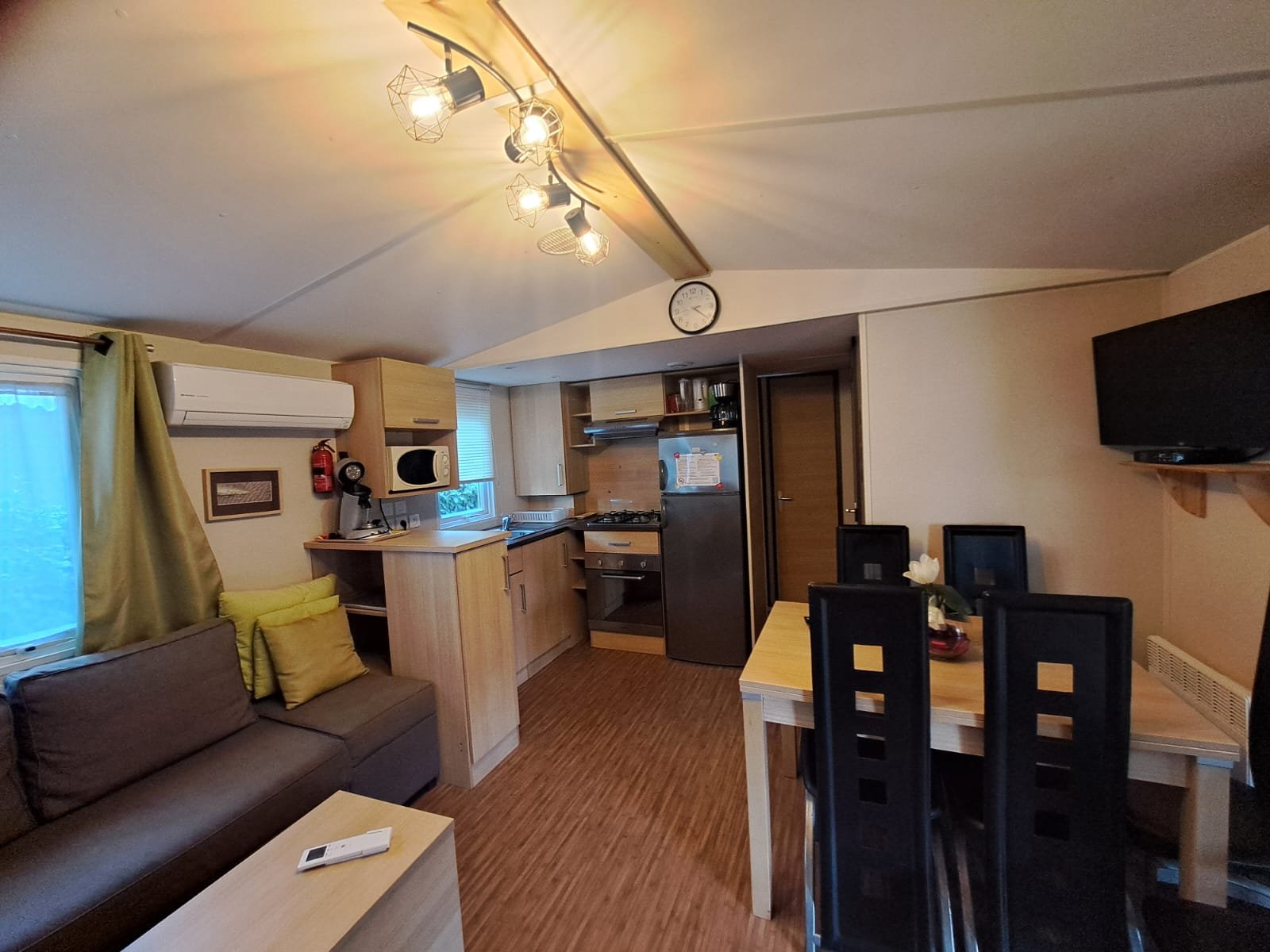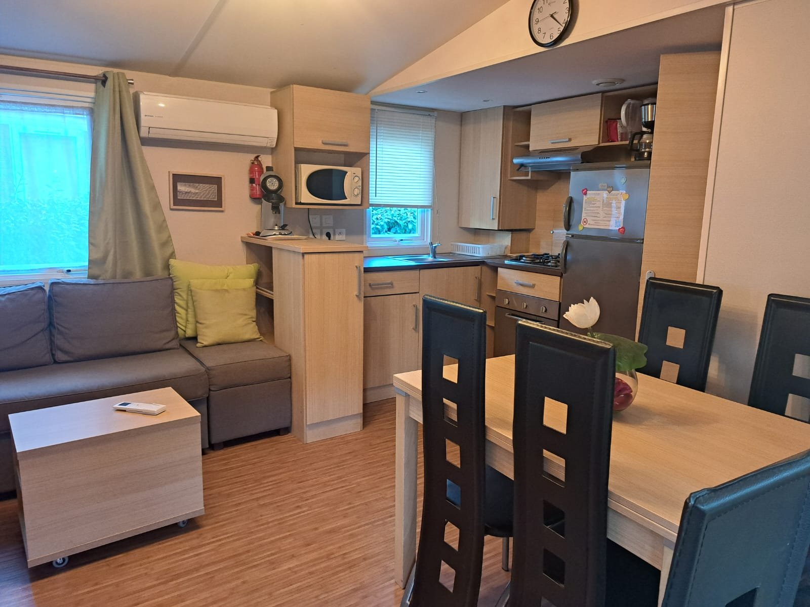 Área total: 40 m²Casa equipada com máquina de lavar roupa e ar condicionado. Possui uma ampla sala de estar com cozinha totalmente equipada, incluindo frigorífico grande, exaustor, fogão, forno, micro-ondas e esquentador. Conta com um quarto principal com closet amplo e dois quartos com duas camas. Dispõe de duas casas de banho completas: uma com chuveiro e lavatório, e outra com chuveiro, lavatório e sanita. Há ainda uma casa de banho de serviço com sanita separada.