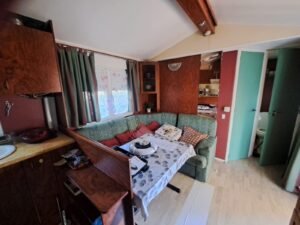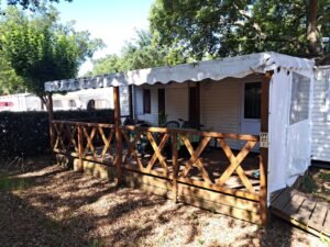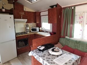 Área total: 25,8 m²Casa equipada com persianas. Dispõe de uma sala de estar com cozinha totalmente equipada, incluindo frigorífico, fogão, forno, exaustor e esquentador. Conta com um quarto com cama de casal e um quarto com duas camas. Inclui uma casa de banho completa com chuveiro e lavatório, além de uma casa de banho de serviço com sanita separada.